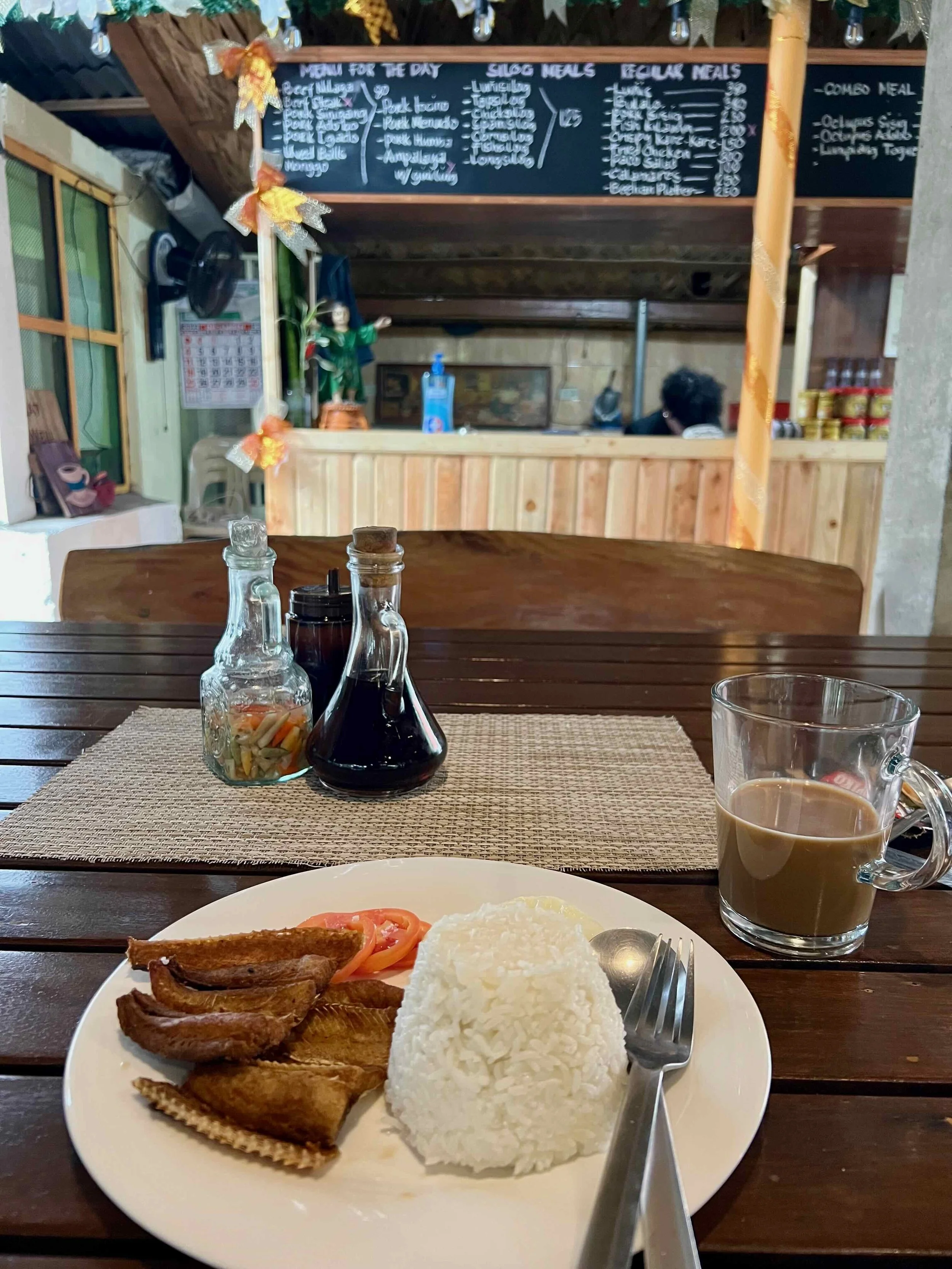 Restaurants in Batanes are few, and Cafe Tukon is someplace place visitors shouldn't miss. Located in the residence of the Abad family, where renowned artist Pacita Abad grew up, now next to rooms available to book at Fundacion Pacita, Cake Tukon is the perfect place to sit on a rainy day and read a book. I mean what a view. The coffee was great and I had a pasta and a salad that featured sun-dried arayu, a migratory fish unique to the foodways of Batanes.